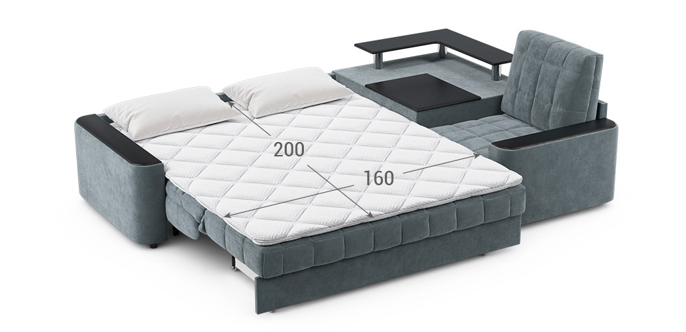 Выбирая угловой диван со столиком, Вы сможете проводить время с максимальным комфортом, многократно повысив функциональность дивана. Все дело в том, что под столешницей модуля расположена вместительная емкость для хранения. Кроме того, поверхность столика — идеальное пространство для чаепития в приятной компании, а также место для множества актуальных мелочей — от ноутбука до косметики.