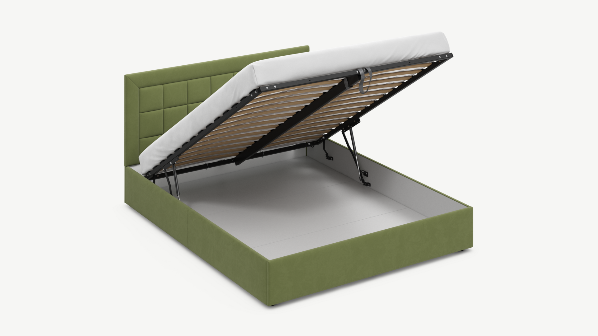 Вместительная емкость под кроватью без внутренних перегородок позволяет использовать для хранения вещей 100% пространства.