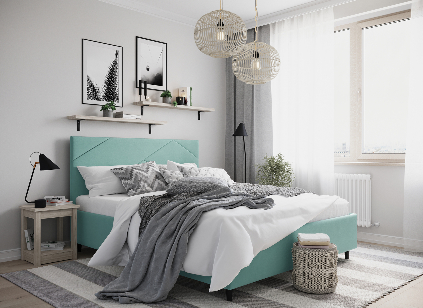 Элегантным и практичным акцентом служат скрытые карманы, расположенные по его углам. Лаконичные формы объемных царг создают единый гармоничный образ и фокусируют внимание на центральном текстурном элементе кровати.