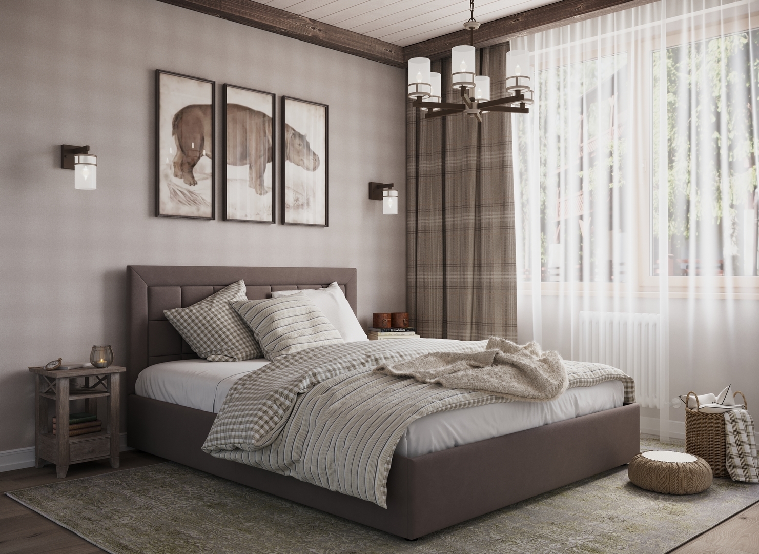Создать гармоничный интерьер и завершить образ спальни помогут дополнительные аксессуары, например: тумбы, банкетки, подушки.