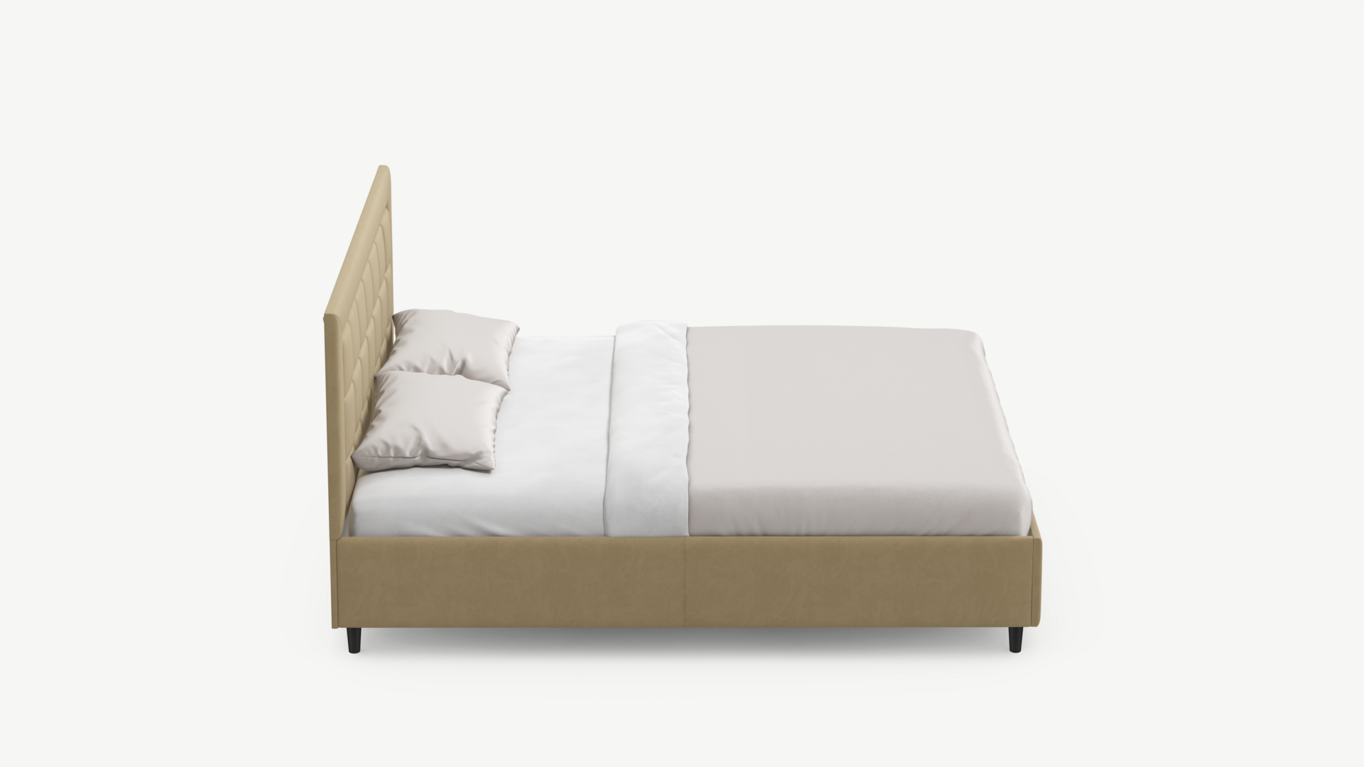 Изголовье декорировано рельефным рисунком стежки в крупный квадрат, получившим особую фактуру за счет глубины шва.