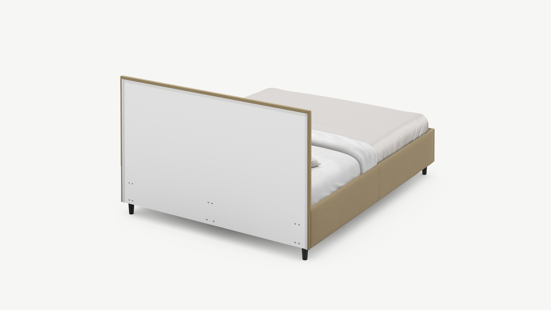 Стежка помещена в центр изголовья и обрамлена, словно картина. Объемные царги завершают цельную фигуру кровати и становятся гармоничным дополнением ее образа.