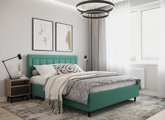 Стежка помещена в центр изголовья и обрамлена, словно картина. Объемные царги становятся гармоничным дополнением образа и завершают цельную фигуру кровати.
