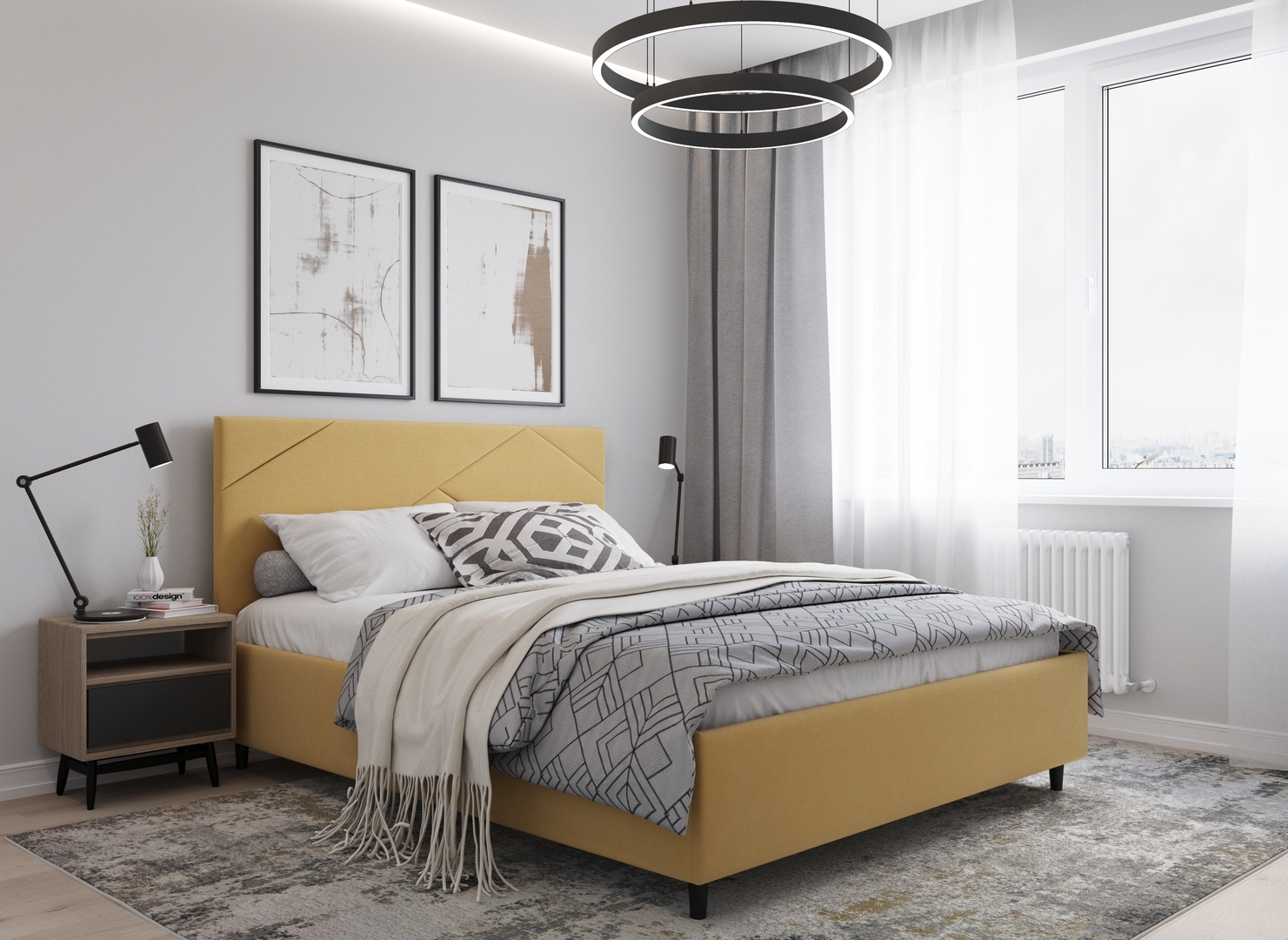 Элегантным и практичным акцентом служат скрытые карманы, расположенные по его углам. Лаконичные формы объемных царг создают единый гармоничный образ и фокусируют внимание на центральном текстурном элементе кровати.