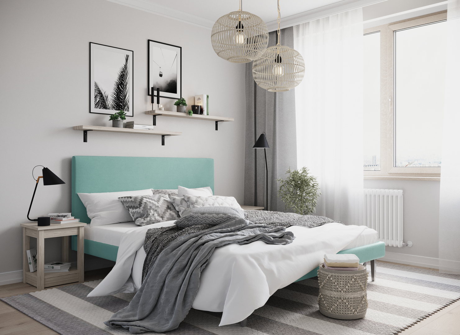 Создать гармоничный интерьер и завершить образ спальни помогут дополнительные аксессуары, например: тумбы, банкетки, подушки.