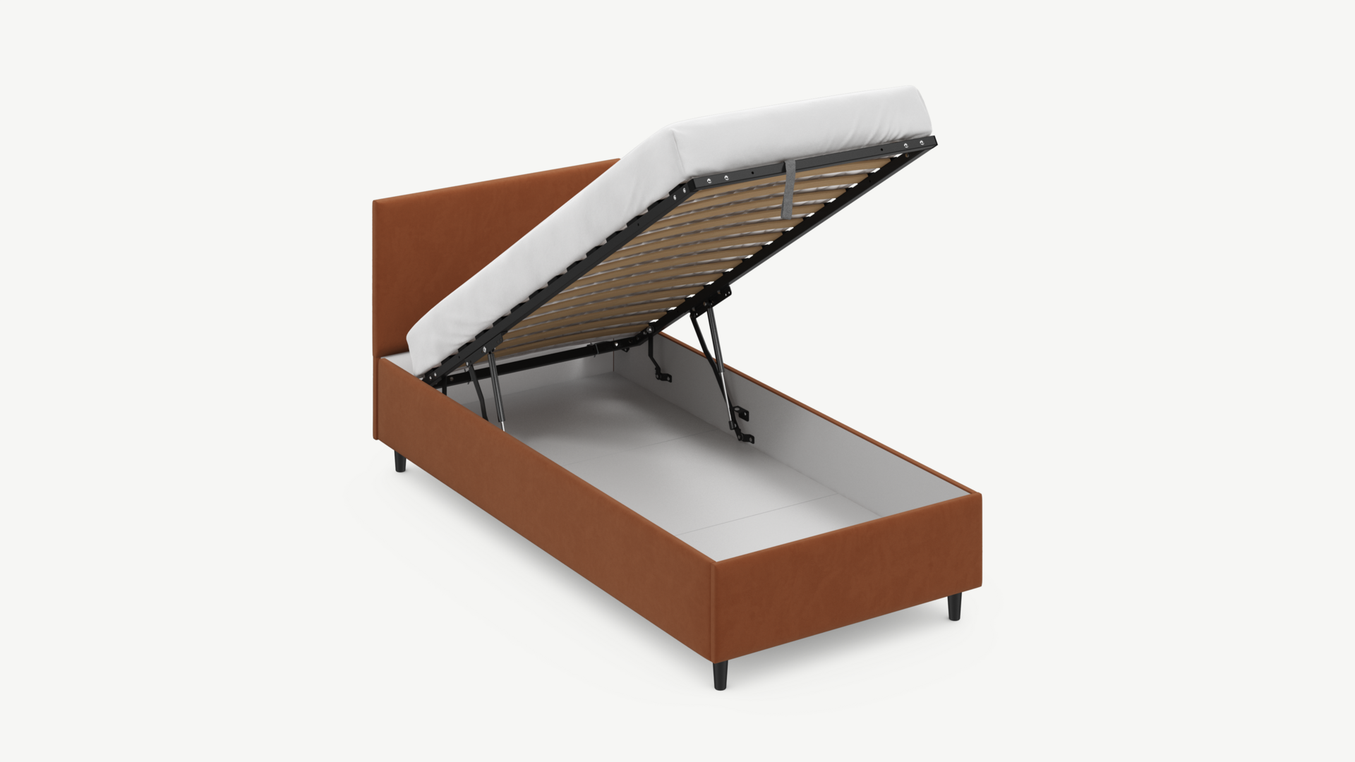 Вместительная емкость под кроватью без внутренних перегородок позволяет использовать для хранения вещей 100% пространства.