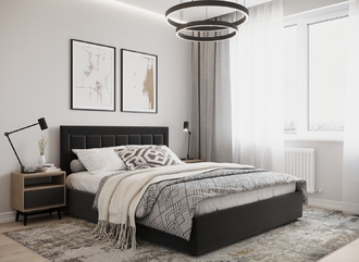 Фактура обивочного материала подбирается дизайнерами с учетом технологических и стилевых особенностей кровати.
