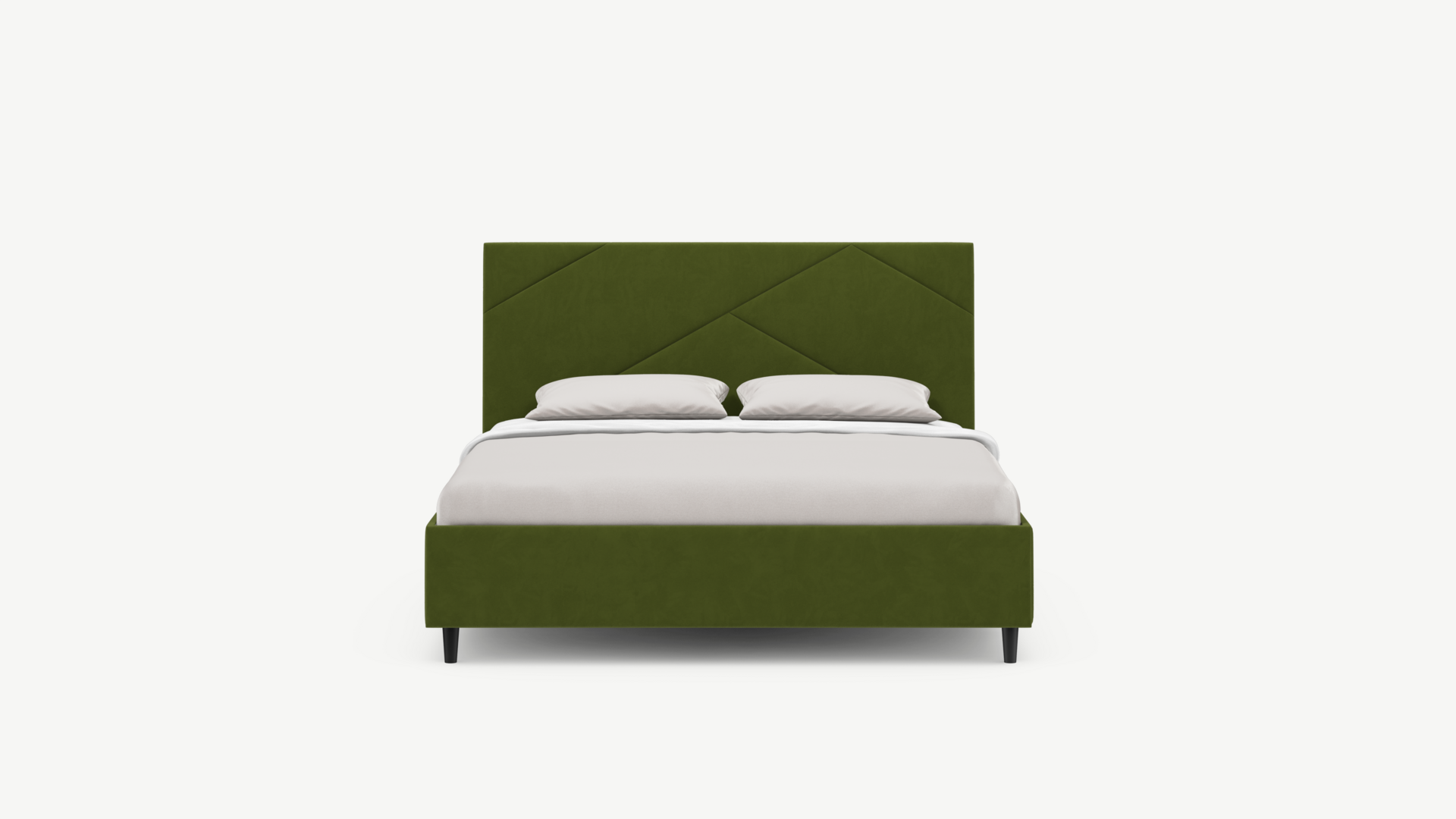Элегантным и практичным акцентом служат скрытые карманы, расположенные по его углам. Лаконичные формы объемных царг создают единый гармоничный образ и фокусируют внимание на центральном текстурном элементе кровати.