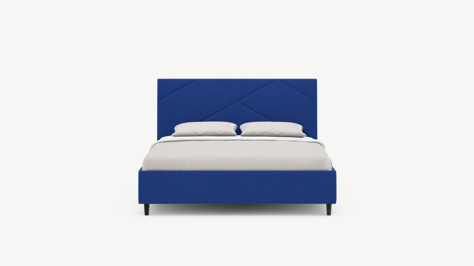 Элегантным и практичным акцентом служат скрытые карманы, расположенные по его углам. Лаконичные формы объемных царг создают единый гармоничный образ и фокусируют внимание на центральном текстурном элементе кровати.