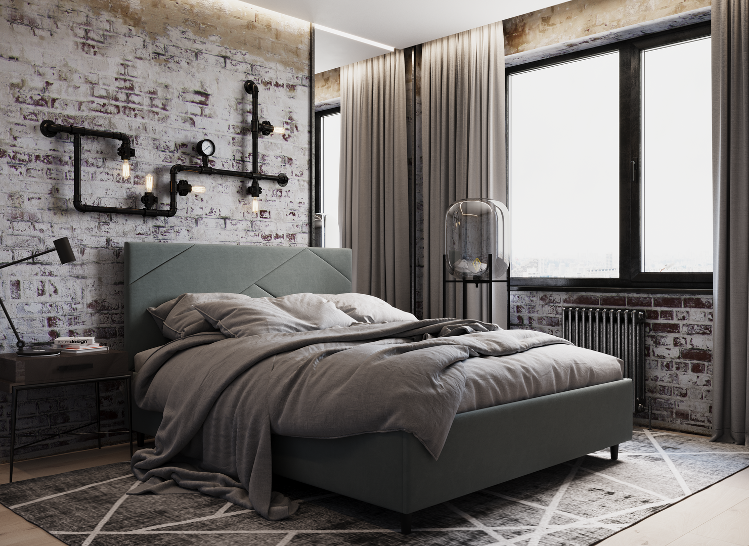 Элегантным и практичным акцентом служат скрытые карманы, расположенные по его углам. Лаконичные формы объемных царг создают единый гармоничный образ и фокусируют внимание на центральном текстурном элементе кровати.