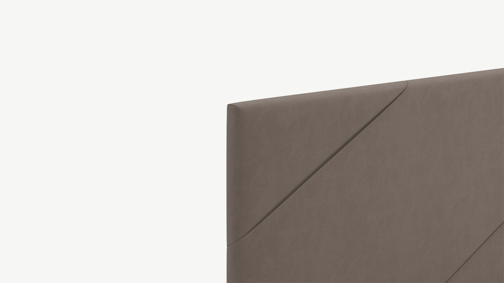Элегантным и практичным акцентом служат скрытые карманы, расположенные по его углам. Лаконичные формы объемных царг создают единый гармоничный образ и фокусируют внимание на центральном текстурном элементе кровати.
