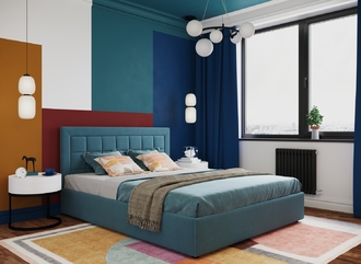 Стежка помещена в центр изголовья и обрамлена, словно картина. Объемные царги становятся гармоничным дополнением образа и завершают цельную фигуру кровати.