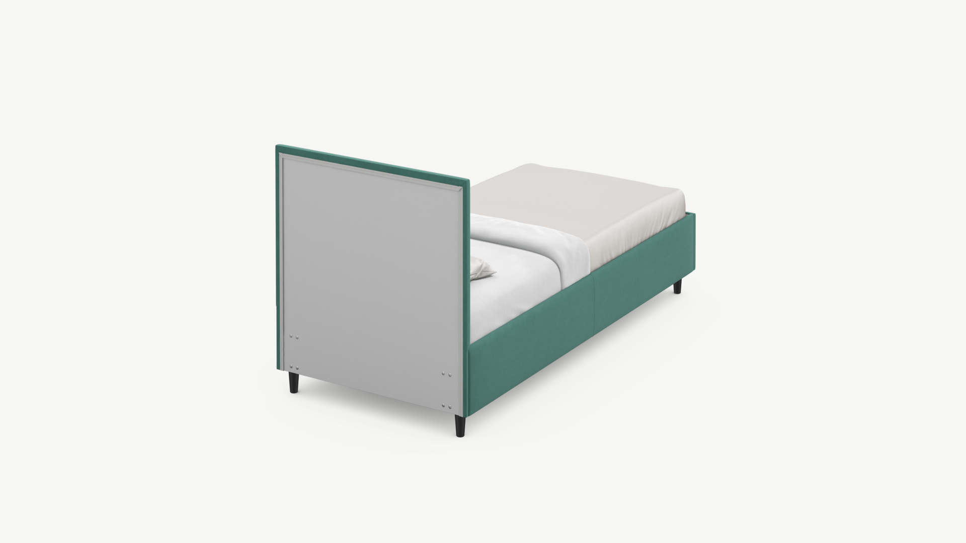 Стежка помещена в центр изголовья и обрамлена, словно картина. Объемные царги завершают цельную фигуру кровати и становятся гармоничным дополнением ее образа.