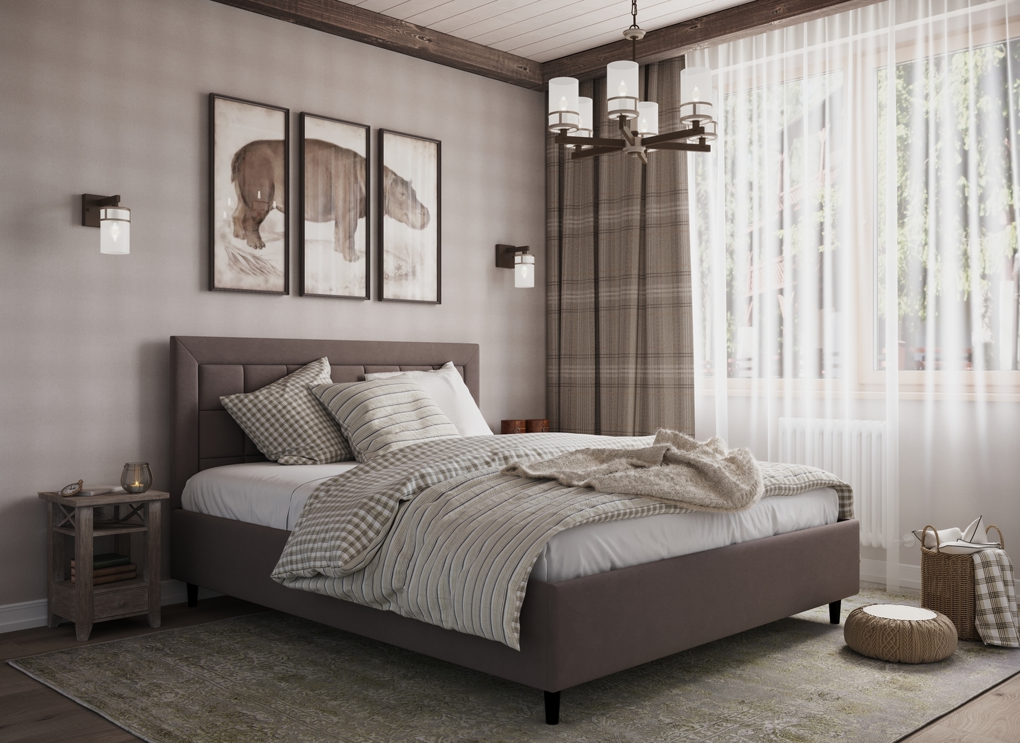Создать гармоничный интерьер и завершить образ спальни помогут дополнительные аксессуары, например: тумбы, банкетки, подушки.