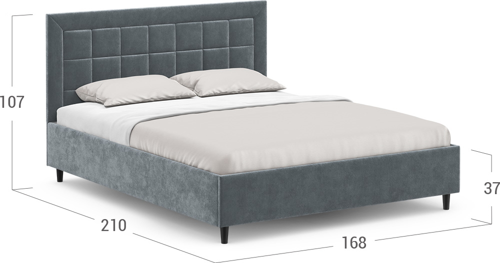 Изголовье декорировано рельефным рисунком стежки в крупный квадрат, получившим особую фактуру за счет глубины шва.