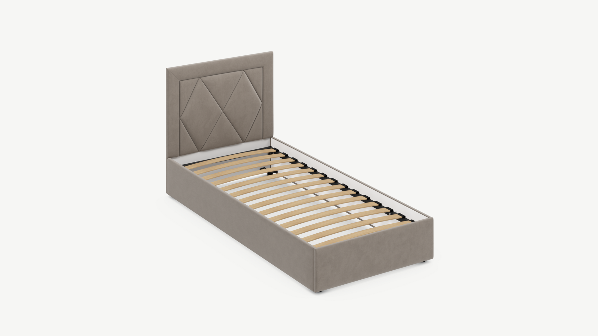 Фактура обивочного материала подбирается дизайнерами с учетом технологических и стилевых особенностей кровати.