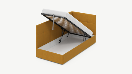 • Скрытая под основанием вместительная емкость без внутренних перегородок позволяет использовать всю площадь подкроватного пространства для хранения вещей.