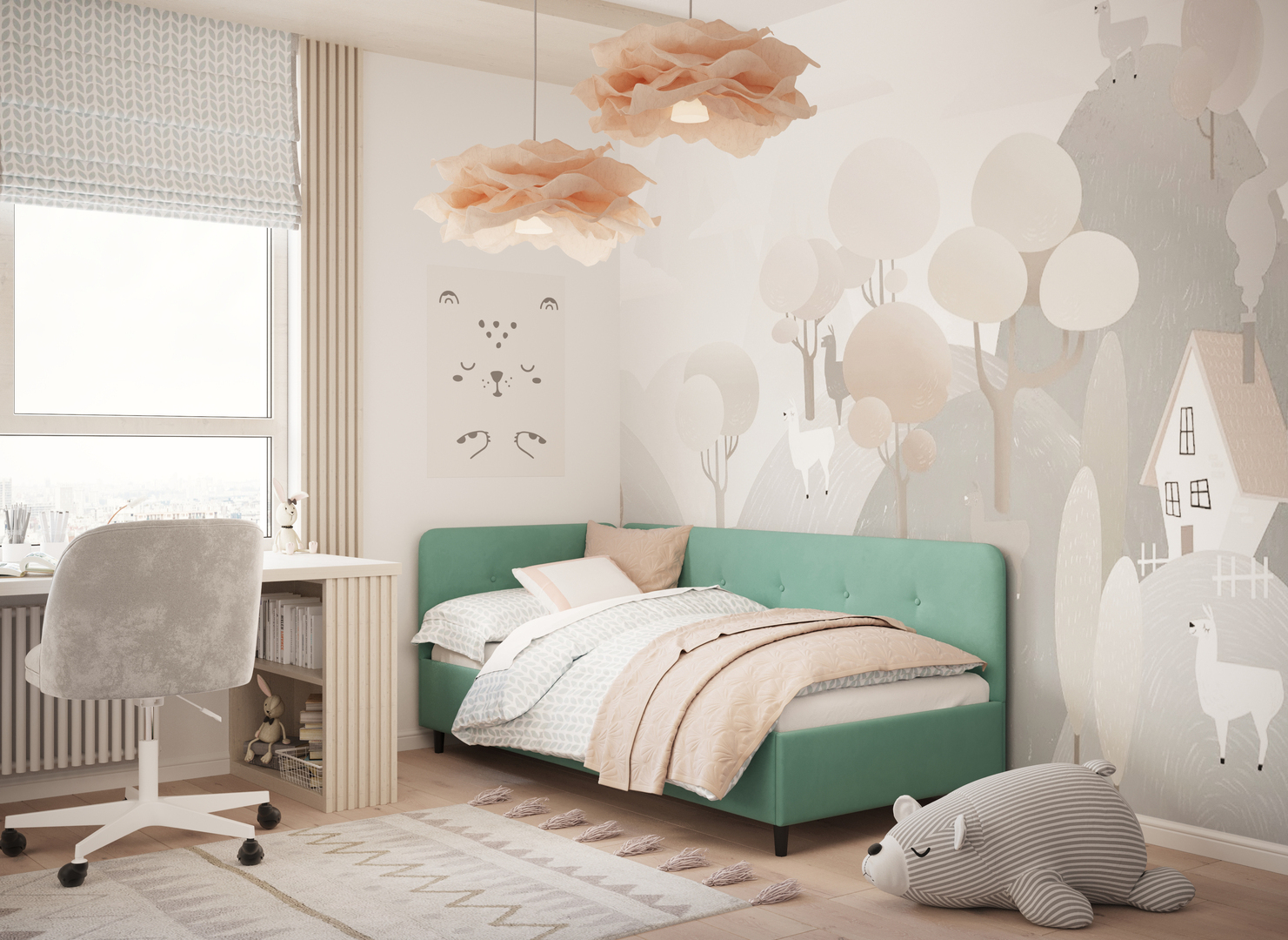 В подростковой комнате эта кровать станет стильным акцентом окружающего интерьера и возьмет на себя роль удобной кушетки для друзей, зашедших в гости.