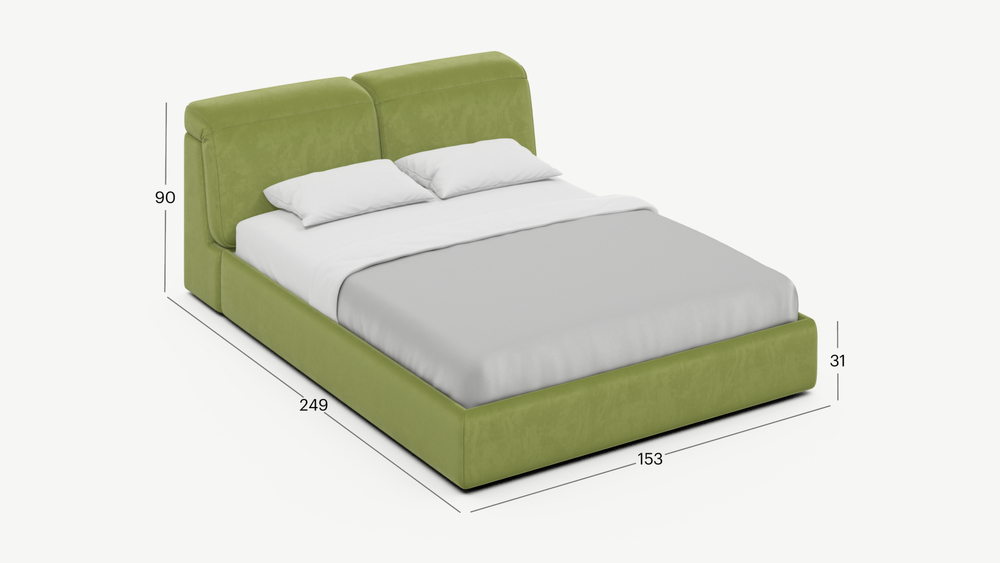 Для оформления кровати наши дизайнеры рекомендуют однотонный велюр, который придает MOON 1107 элегантную утонченность.